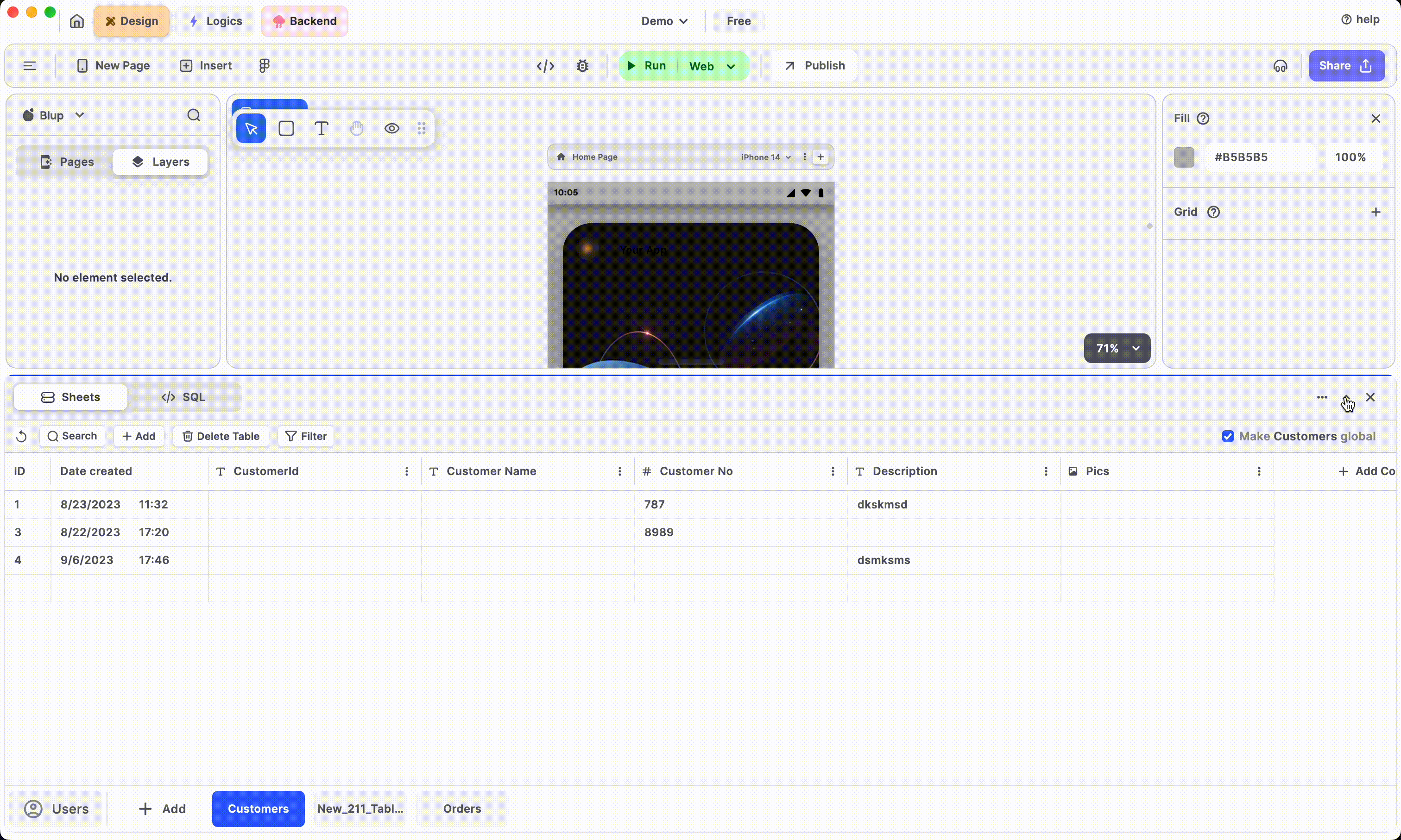 To build the backend of your app, you need to continuously switch between the **Sheets** and the **SQL**, this is where this switch button comes in handy.